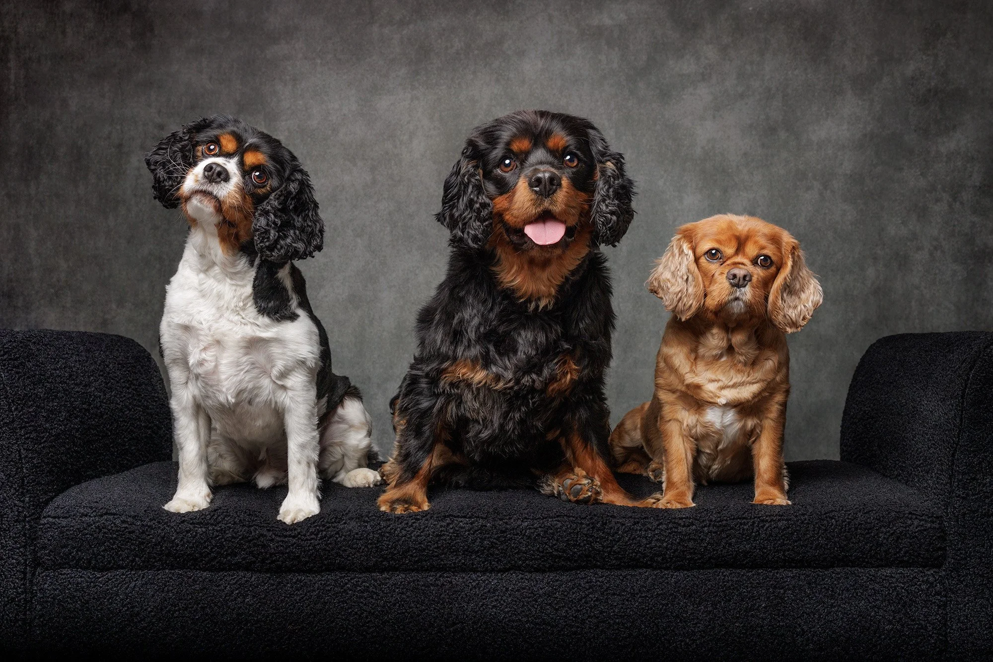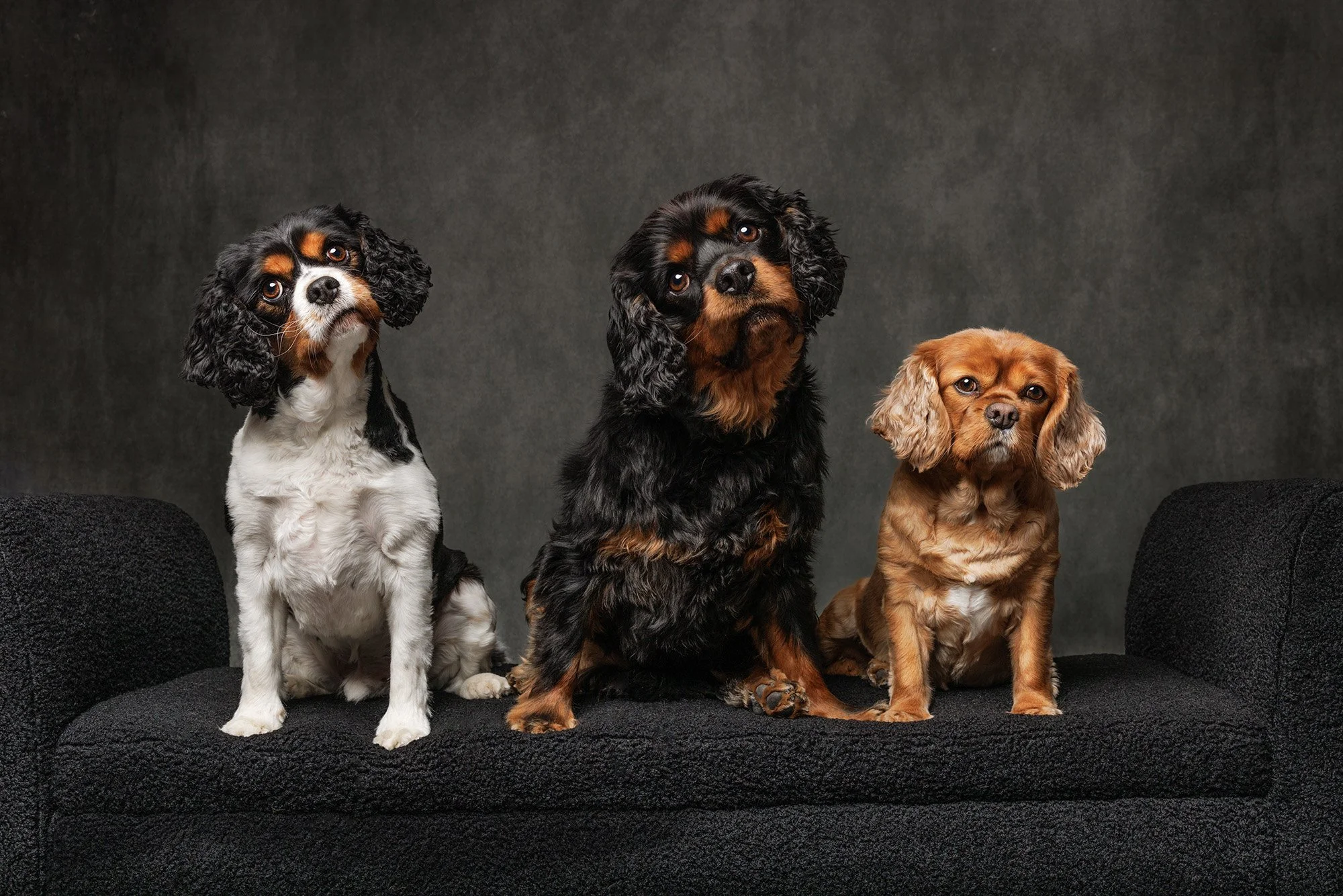 These three amazing cavaliers came in to the studio to capture their personalities to be proudly displayed on the walls of their home! They all had different personalities, which they proudly displayed in their portraits! I affectionately named them “The Cupcake City Cavaliers” as their mom is the owner of Cupcake City in Reading Massachusetts. If you are looking for fabulous cupcakes, look no further as they are amazing!!!