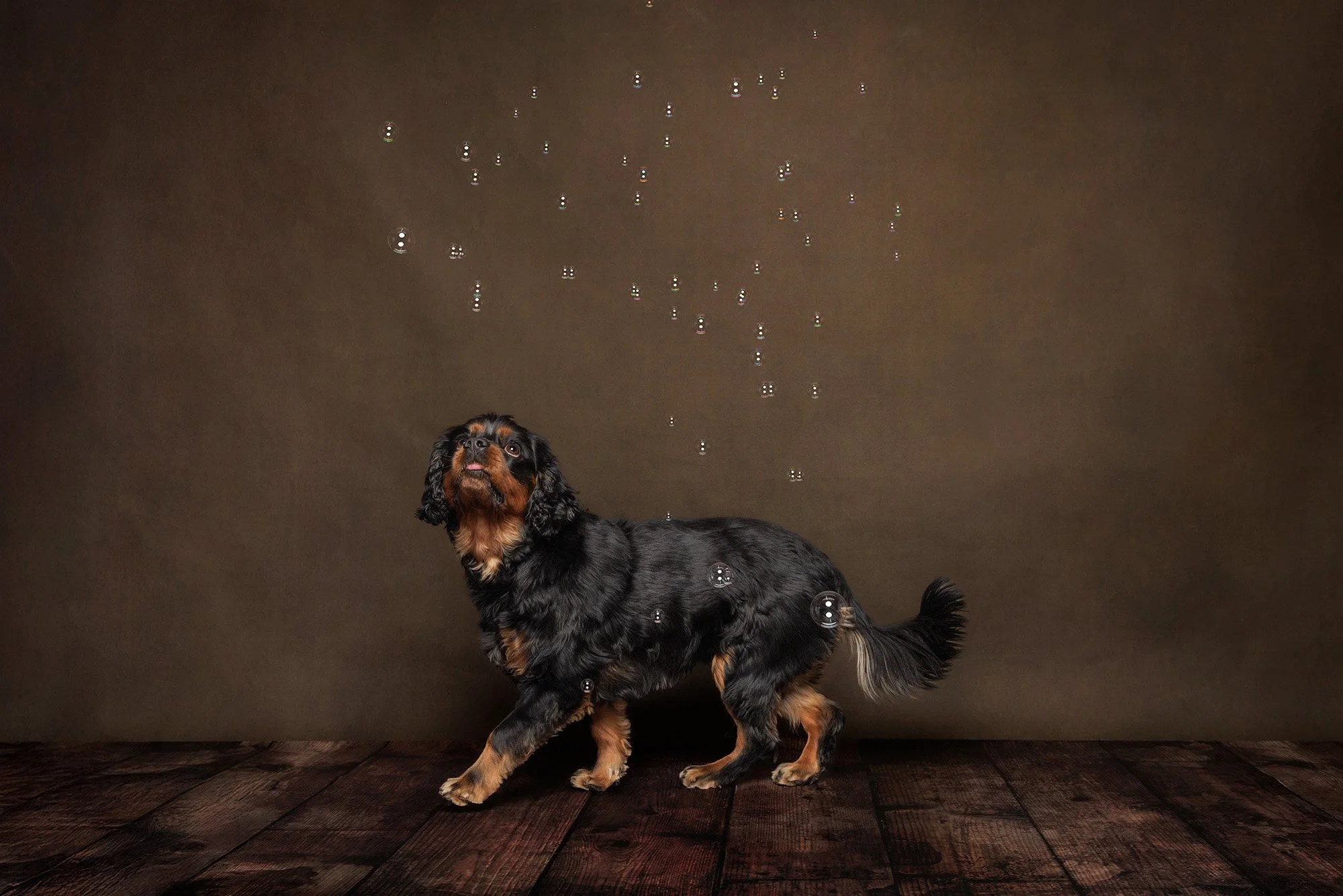 This 2 year old pup is not your average size cavalier coming in at a whopping 34 pounds. He loved having his mom close by during our session and she was often within an arms reach at all times! He was very intrigued by our dog bubbles, though explored them from a safe distance!