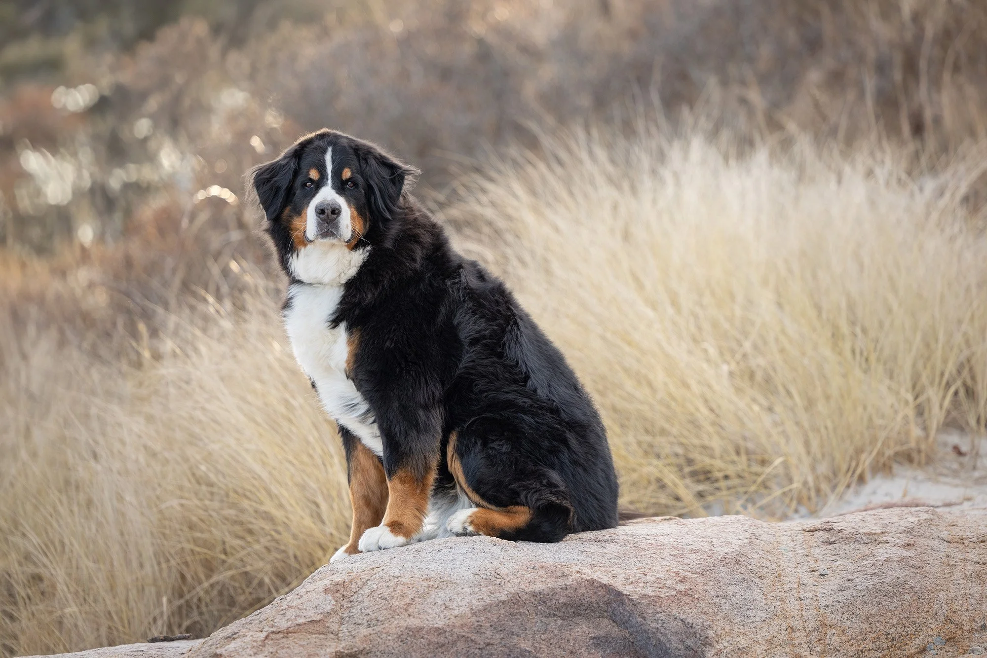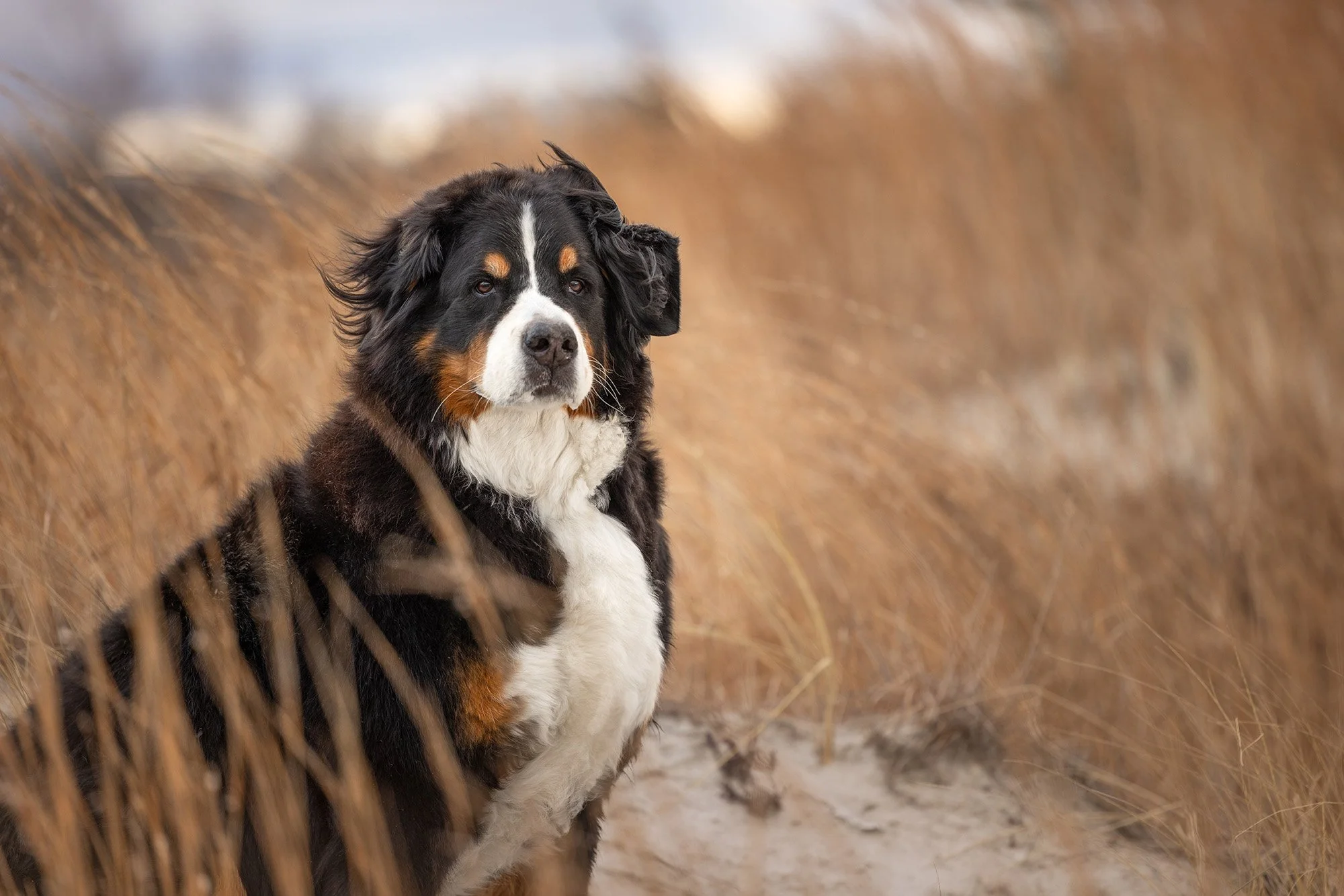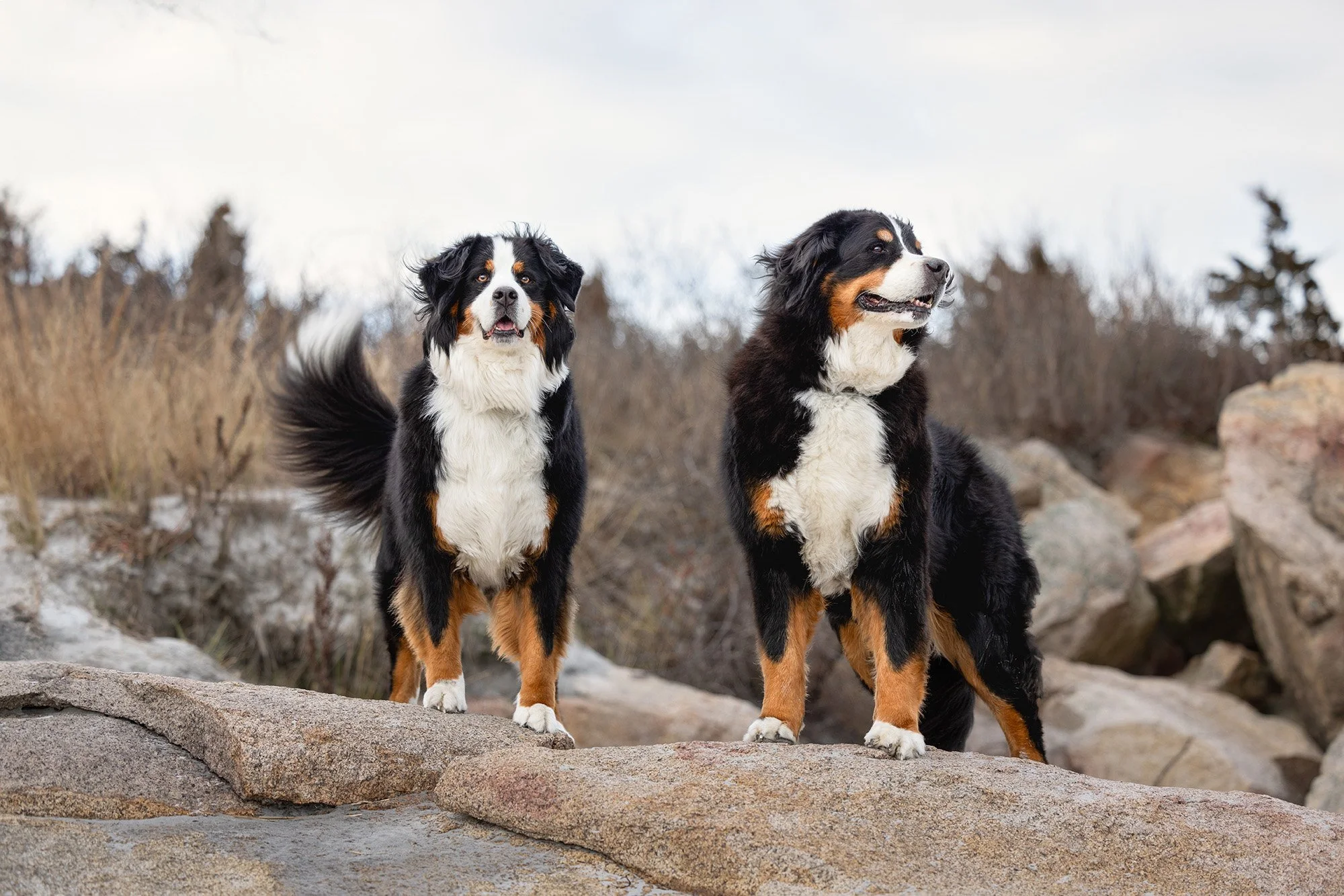 I had the honor to photograph these two beautiful souls on a windy day at Wingaersheek, Beach Gloucester, Massachusetts. Lilah and Wrigley both crossed the rainbow bridge this year. The sisters are Bernese Mountain Dogs who we have been talking about photographing for a while. Their human siblings set up the session as a surprise gift to their parents. It was no small feat to smuggle two 80 pound plus dogs out of the house for an afternoon session at the beach, but they pulled it off, and I am so grateful they did!