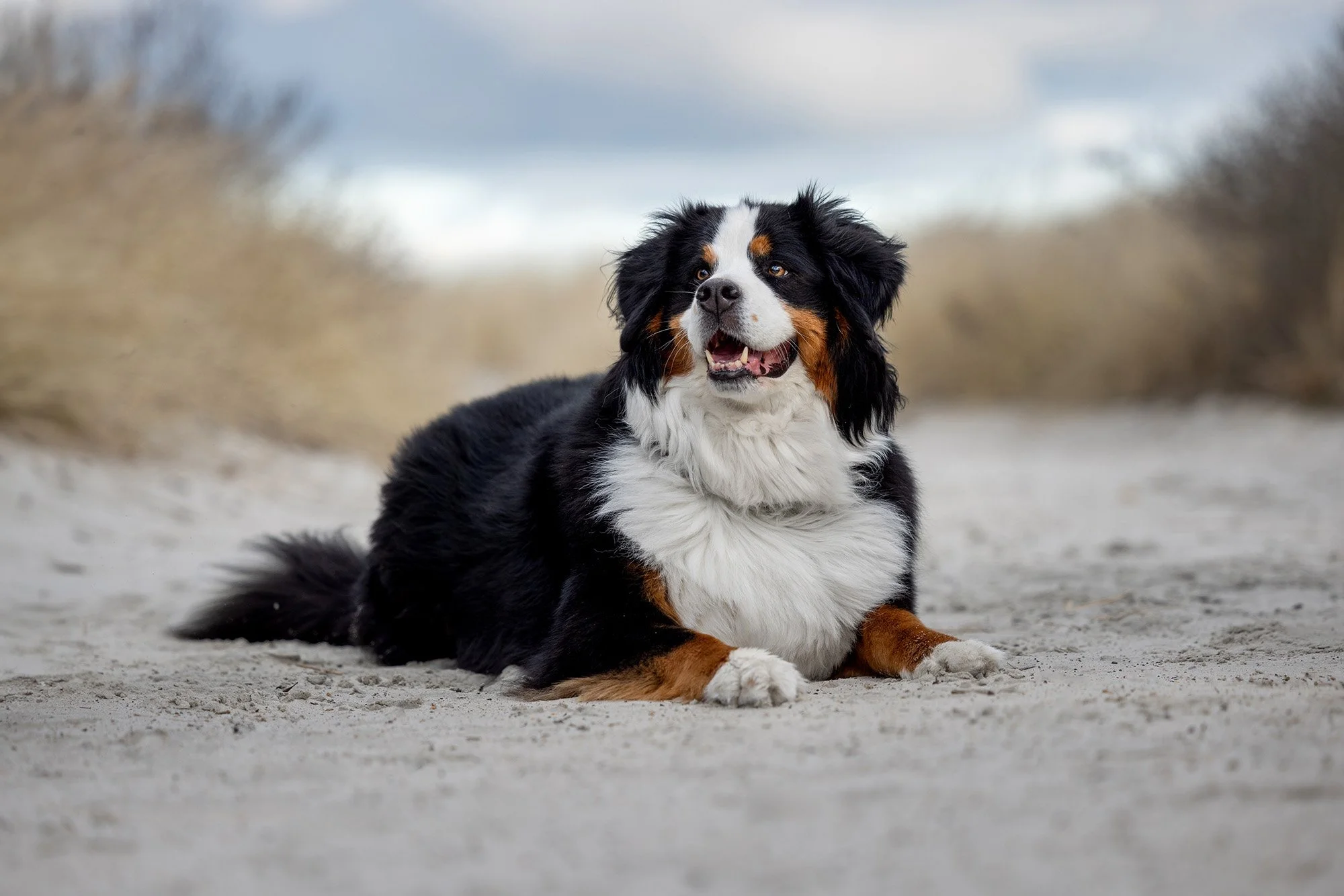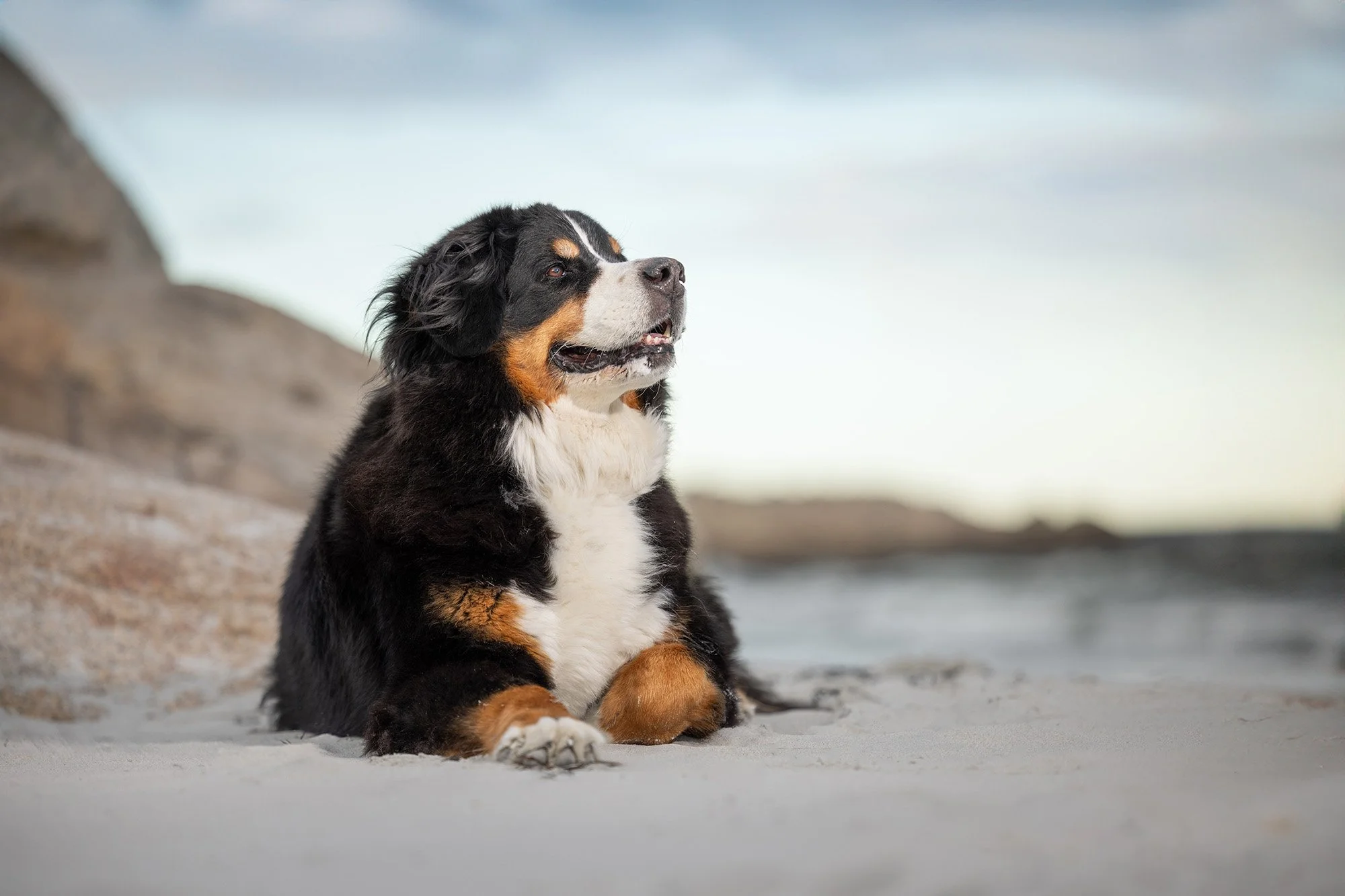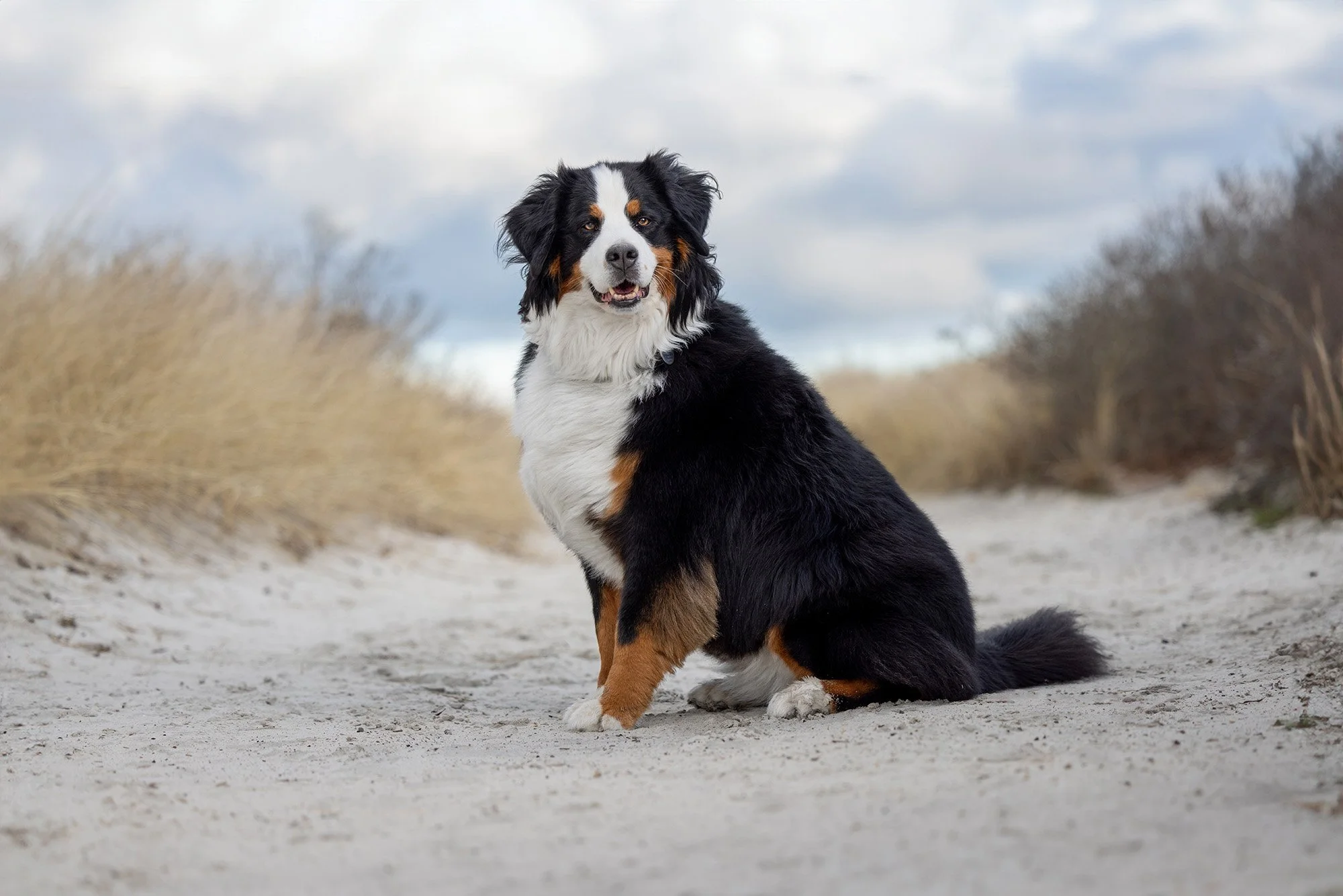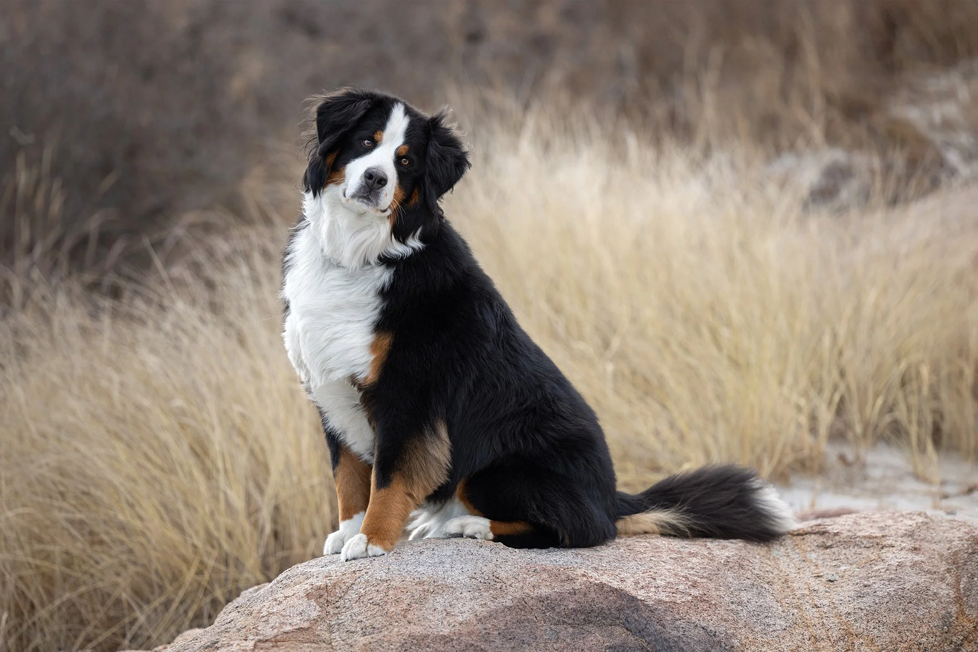 I had the honor to photograph these two beautiful souls on a windy day at Wingaersheek, Beach Gloucester, Massachusetts. Lilah and Wrigley both crossed the rainbow bridge this year. The sisters are Bernese Mountain Dogs who we have been talking about photographing for a while. Their human siblings set up the session as a surprise gift to their parents. It was no small feat to smuggle two 80 pound plus dogs out of the house for an afternoon session at the beach, but they pulled it off, and I am so grateful they did!